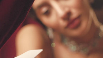 14 kt White Gold Diamond Necklace Set with Round Brilliant Diamonds & Semi Precious Green Gemstones.